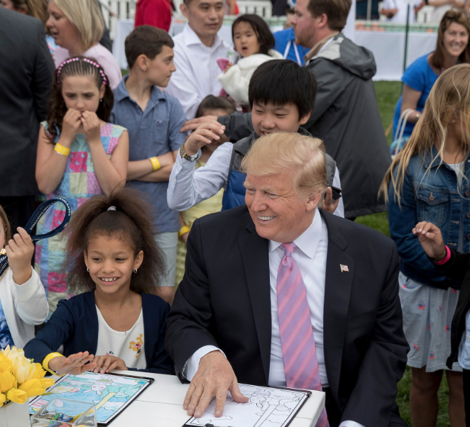 It looks like you had a wonderful time coloring and talking politics with the kids at the Easter Egg Roll yesterday. Did you happen to catch the name of the little boy who asked you about the wall? I wonder what his conception of the wall is.